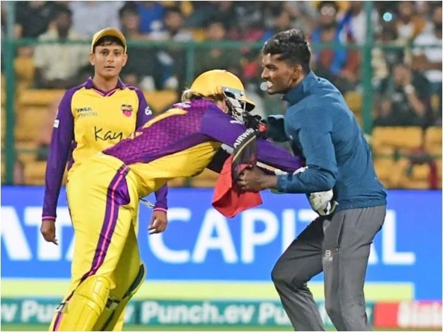 بھارت میں جاری ویمن پریمئیر لیگ (ڈبلیو پی ایل) کے میچ کے دوران ایک تماشائی گراؤنڈ میں گھس آیا جہاں یو پی وارئیرز کی ایلیسا ہیلی نے سکیورٹی کی خلاف ورزی کرنے والے شخص کو پکڑنے کی کوشش کی، جسکی تصاویر سوشل میڈیا پر تیزی سے وائرل ہورہی ہیں۔