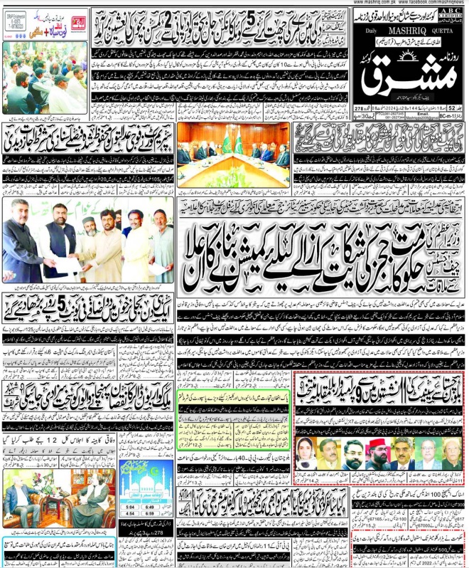 Daily Mashriq Quetta. 29-03-2024 On مارچ 29, 2024 Share Mashriq 29 Share FacebookTwitterGoogle+ReddItWhatsAppPinterestEmail
