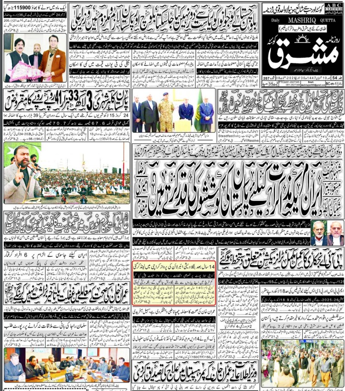 Daily Mashriq Quetta. 30-01-2026 On جنوری 30, 2026 Share Mashriq 30 Januray 2026 Share FacebookTwitterGoogle+ReddItWhatsAppPinterestEmail