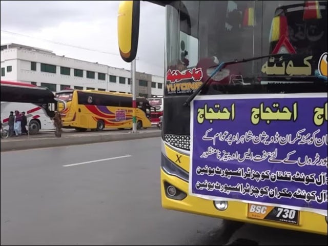 بلوچستان میں ٹرانسپورٹرز نے سخت حکومتی پالیسی کے خلاف پہیہ جام ہڑتال کا اعلان کردیا۔ کوئٹہ میں پریس کانفرنس کرتے ہوئے ٹرانسپورٹر ایسوسی ایشن کے رہنماوٴں نے کہا کہ گزشتہ 12 روز سے احتجاج کررہے ہیں مگر کوئی پوچھنے والا ہی نہیں۔ رہنما سعید لہڑی نے کہا کہ نوشکی واقعہ کے بعد ٹرانسپورٹز کو سخت ایس او پیش جاری کیے گئے ہیں، کوئٹہ ٹو تفتان اور کوئٹہ ٹو مکران روٹس پر شام پانچ بجے سے صبح 6 بجے تک ٹرانسپورٹ پر پابندی عائد کی گئی ہے، تفتان سے کوئٹہ گھریلو اشیاء لانے پر بھی ٹرانسپورٹرز کو تنگ کیا جاتا ہے، کوئٹہ سے گوادر تک کئی بھی پاکستانی پیٹرول دستیاب نہیں ہے۔ سعید لہڑی نے کہا کہ پُرامن احتجاج کررہے ہیں مگر کوئی نوٹس نہیں لے رہا، پُرامن احتجاج کے بعد اب پہیہ جام ہڑتال کا اعلان کرتے ہیں، پہیہ جام ہڑتال کے باعث کسی بھی نقصان کی ذمہ داری حکومت پر عائد ہوگی۔