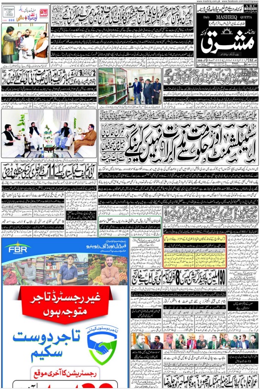 Daily Mashriq Quetta. 30-04-2024 On اپریل 30, 2024 Share Mashriq 30 Share FacebookTwitterGoogle+ReddItWhatsAppPinterestEmail