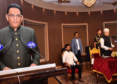 اظہرالدین نے اللہ کے نام پر حلف اٹھایا اور تقریب کے اختتام پر جے تلنگانہ اور جے ہند کے نعرے لگائے۔